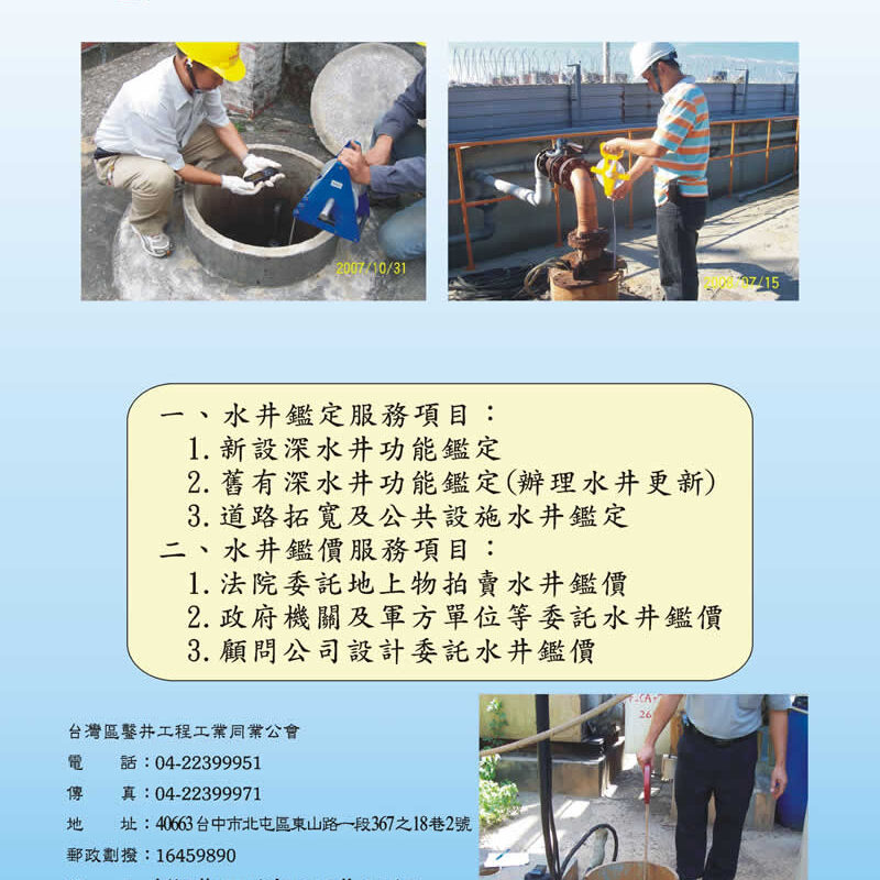 一、水井鑑定服務項目: